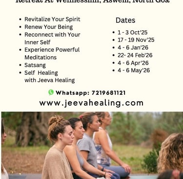 A THREE -days retreat at coastal haven of Ashwem Village, Goa. Our retreat at Wellnessinn in North Goa offers a soul-nourishing meditation practices including Jeeva Healing, and heartfelt Satsang.